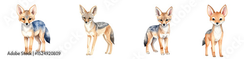 © anocha, Fototapeta premium Four colorful illustrations of playful foxes in various poses and expressions.
