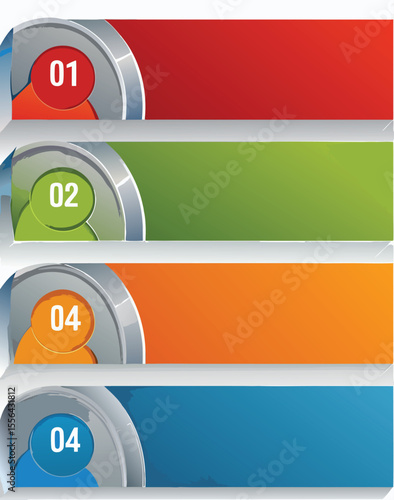 Obraz premium Four Colorful Numbered Banners Red Green Orange Blue Metallic Design Elements...