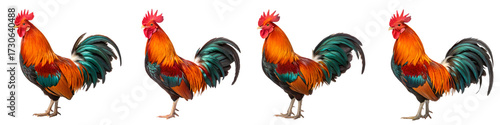 Fototapeta premium Four colorful roosters isolated on transparent background