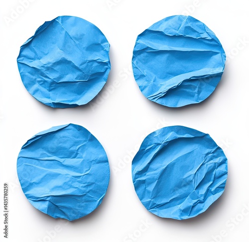 © Sklixs, Fototapeta premium Four crumpled blue circles on a white background