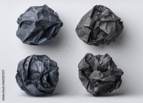 Fototapeta premium Four crumpled paper balls on white