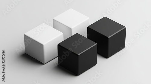 Fototapeta premium Four cubes, two white and two black, arranged on a white surface with a...