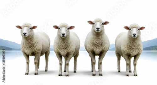 © Zayan, Fototapeta premium "Four Curly-Horned Sheep Isolated on White Background - Premium Livestock Photography"