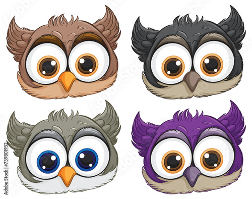 Fototapeta premium Four cute owls with different feather colors.