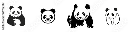 © yailek, Obraz premium Four cute panda illustrations on a white isolated background.