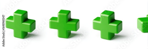 Obraz premium Four 3D green plus signs on white background