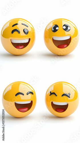 © Supriyono, Fototapeta premium Four 3D rendered happy emoticon spheres, each with a unique joyful expression