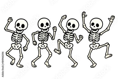 © Andrei, Naklejka premium Four Dancing Skeletons on a Gradient Background