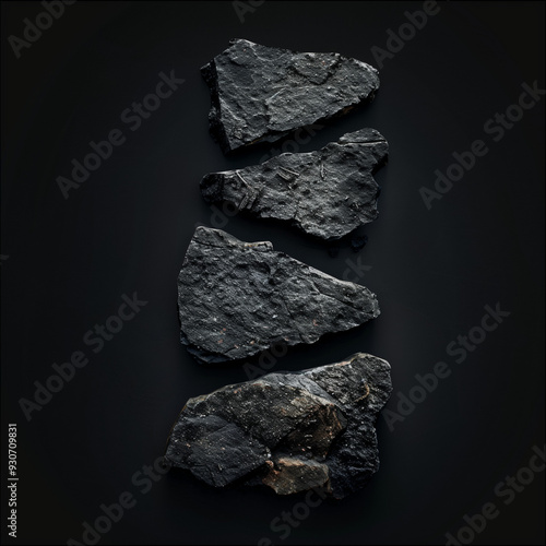 © WarriorsTribe, Fototapeta premium Four Dark Stones on a Black Background