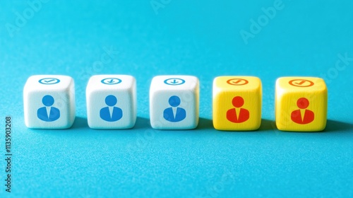© milenialdesastudio, Obraz premium Four dice showing approved and rejected person icons.