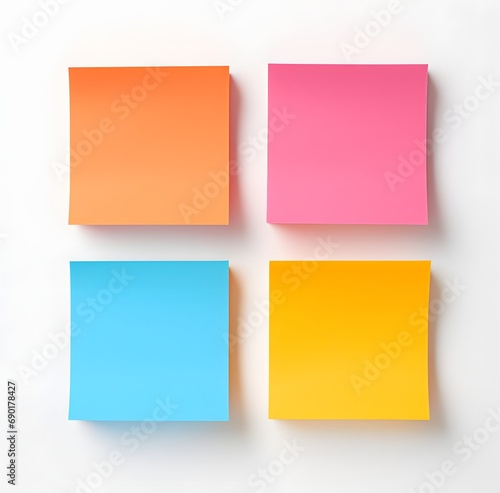 © IgnacioJulian, Fototapeta premium four different colored post it notes on a white background, vibrant cartoonish