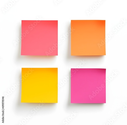 © IgnacioJulian, Fototapeta premium four different colored post it notes on a white background, vibrant cartoonish