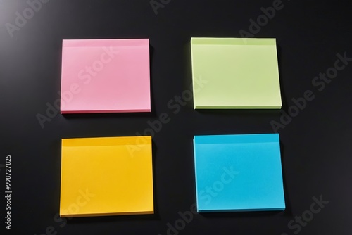 © haiqiang, Fototapeta premium four different colored sticky notes are placed on a black surface