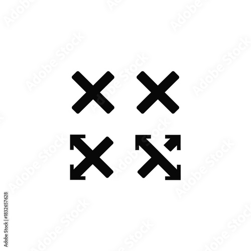 Obraz premium Four different cross icons and arrows, representing closure, cancellation, and resizing options on a plain white background