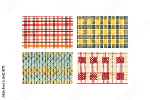 Fototapeta premium Four different plaid fabric patterns in a collage on a black background