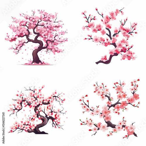 © myfirst, Fototapeta premium Four different trees with pink blossoms