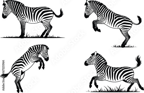 Fototapeta premium Four dynamic zebra poses capturing majestic african wildlife in action and...