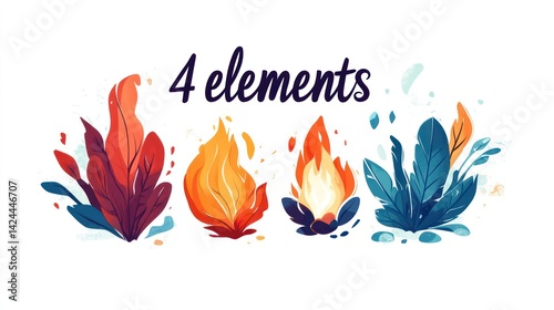 Fototapeta premium Four Elements Fire, Earth, Air, Water; Stylized Illustration