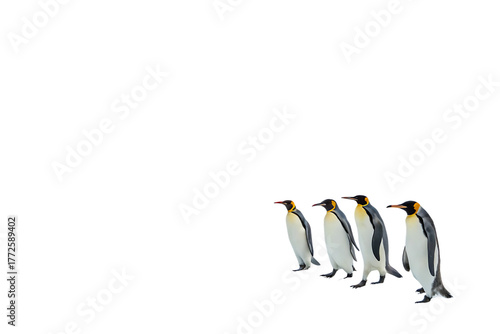 © Mozammel, Obraz premium Four emperor penguins standing together isolated on transparent background