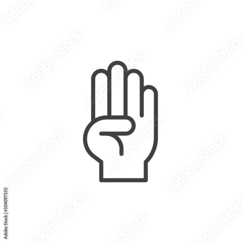 Obraz premium Four finger hand gesture line icon