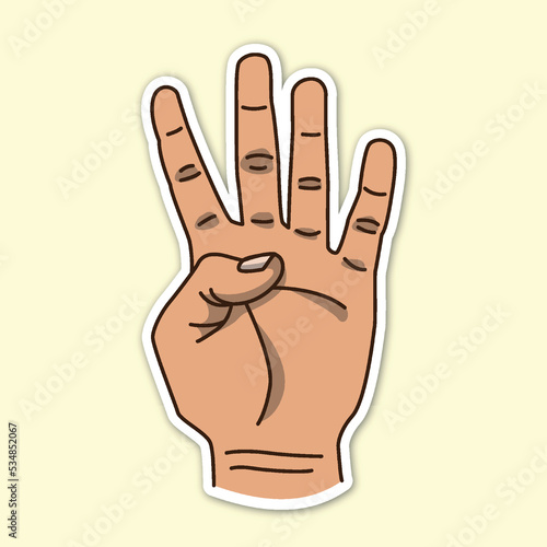 Fototapeta premium four fingers hand poses, editable cartoon style sticker vector