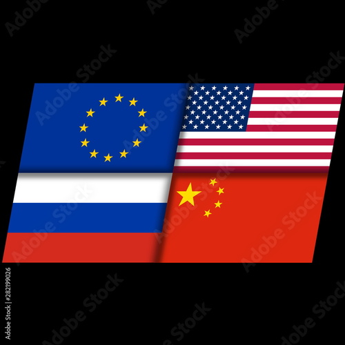 Naklejka premium Four flags countries - the United States, Russia, China and the United...
