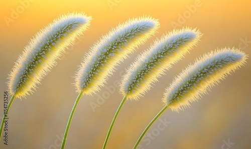 © Azril, Obraz premium Four fluffy grass stalks backlit by sunset.