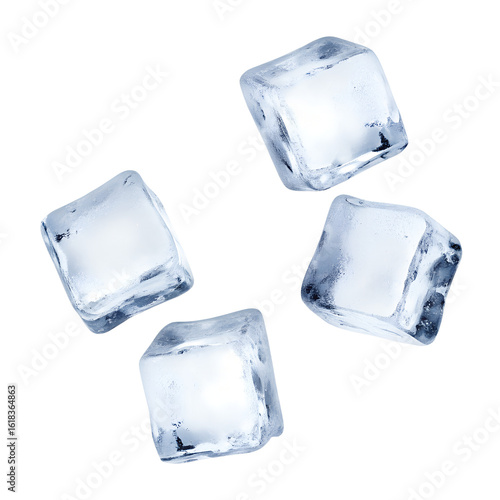 Fototapeta premium Four flying ice cubes cut out