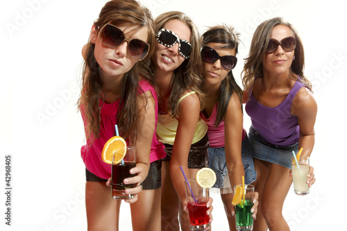 © alexandre zveiger, Obraz premium four girls have fun at the party, studio portrait