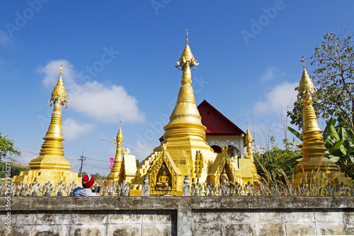 © suthin3, Fototapeta premium Four gold pagoda and sky
