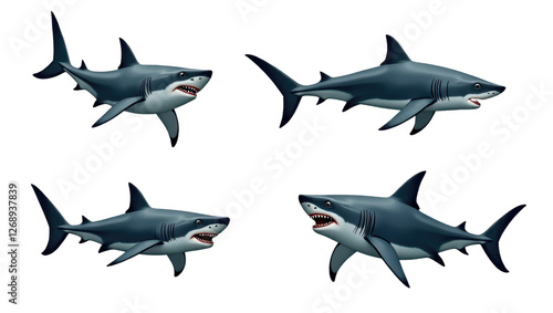 Obraz premium Four Great White Sharks Digital Illustration Ocean Predators Marine Wildlife...