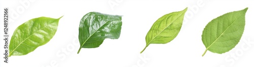 Fototapeta premium Four green leaves, studio shot, white background, nature design