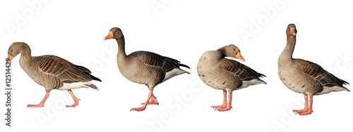 © JPS, Fototapeta premium Four greylag geese isolated on white