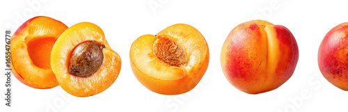 © Meryati, Fototapeta premium Four halved apricots and peaches, isolated