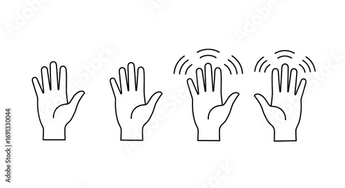 Fototapeta premium Four hand outlines with radiating lines indicating touch or sensing...