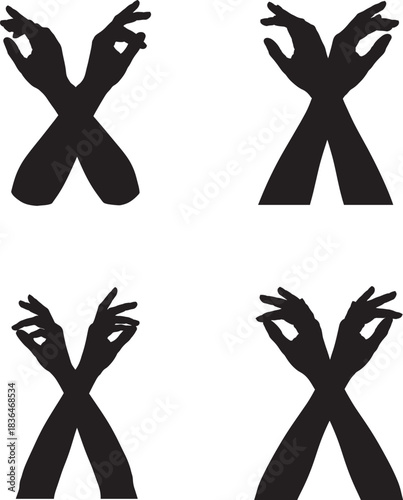 Fototapeta premium Four hand shadows forming the letter x on a white background