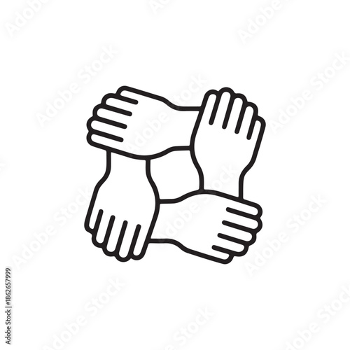 © Joyadobe, Fototapeta premium Four hands linked together in a circle symbolizing unity teamwork and support