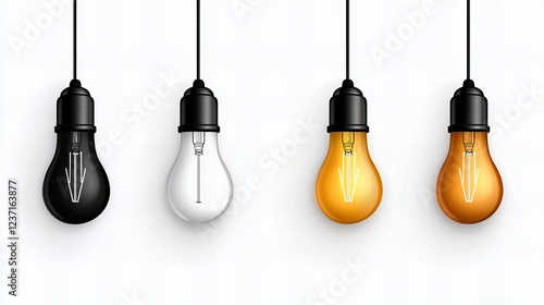 Naklejka premium Four hanging lightbulbs in black, white, and amber. A visual representation...