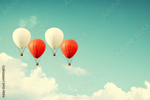 © Azizah, Fototapeta premium Four hot air balloons in a row against a pastel sky
