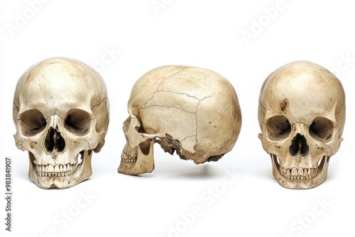 © stock.metket.com, Naklejka premium Four human skulls isolated on white background