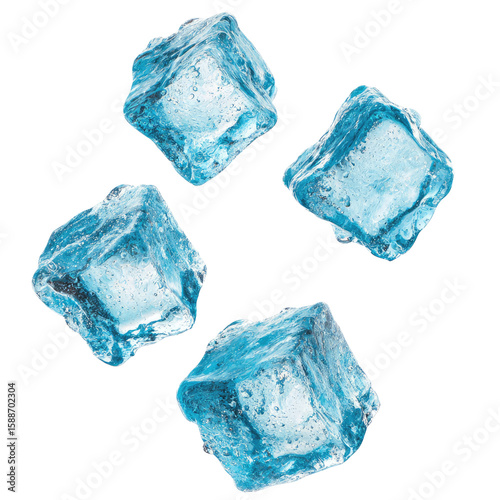 Obraz premium Four Ice Cubes Floating Elegantly Over White Background