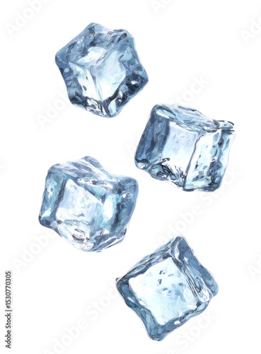 © Divine123victory, Fototapeta premium Four Ice Cubes Floating in Air on Transparent Background ice cubes floating