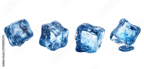 © tiwi, Fototapeta premium Four ice cubes, isolated on black background