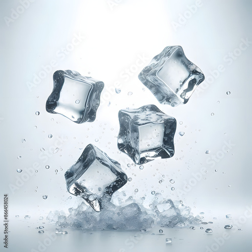 © Galeno, Obraz premium four ice cubes white background