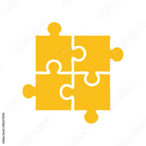Fototapeta premium Four interconnected golden puzzle pieces forming a cohesive square for...