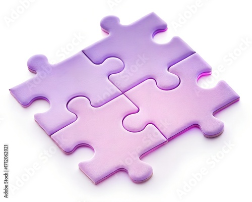 © sporsho, Obraz premium Four interlocking translucent purple and pink puzzle pieces forming a square on white connection solution