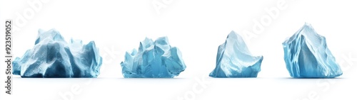 Fototapeta premium Four Isolated Blue Icebergs on White Background