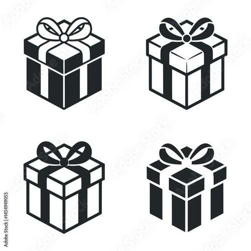 © MOHAMMAD, Obraz premium Four isometric gift box icons with ribbon bows present graphic design elements