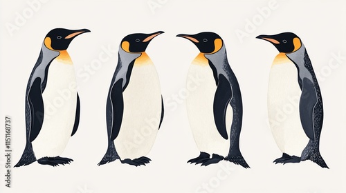 Fototapeta premium Four king penguins in different poses, isolated on white.