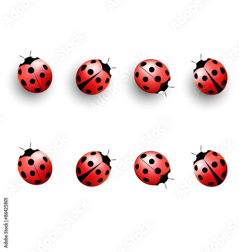 Obraz premium Four lady bugs with shadows and isolated on white background